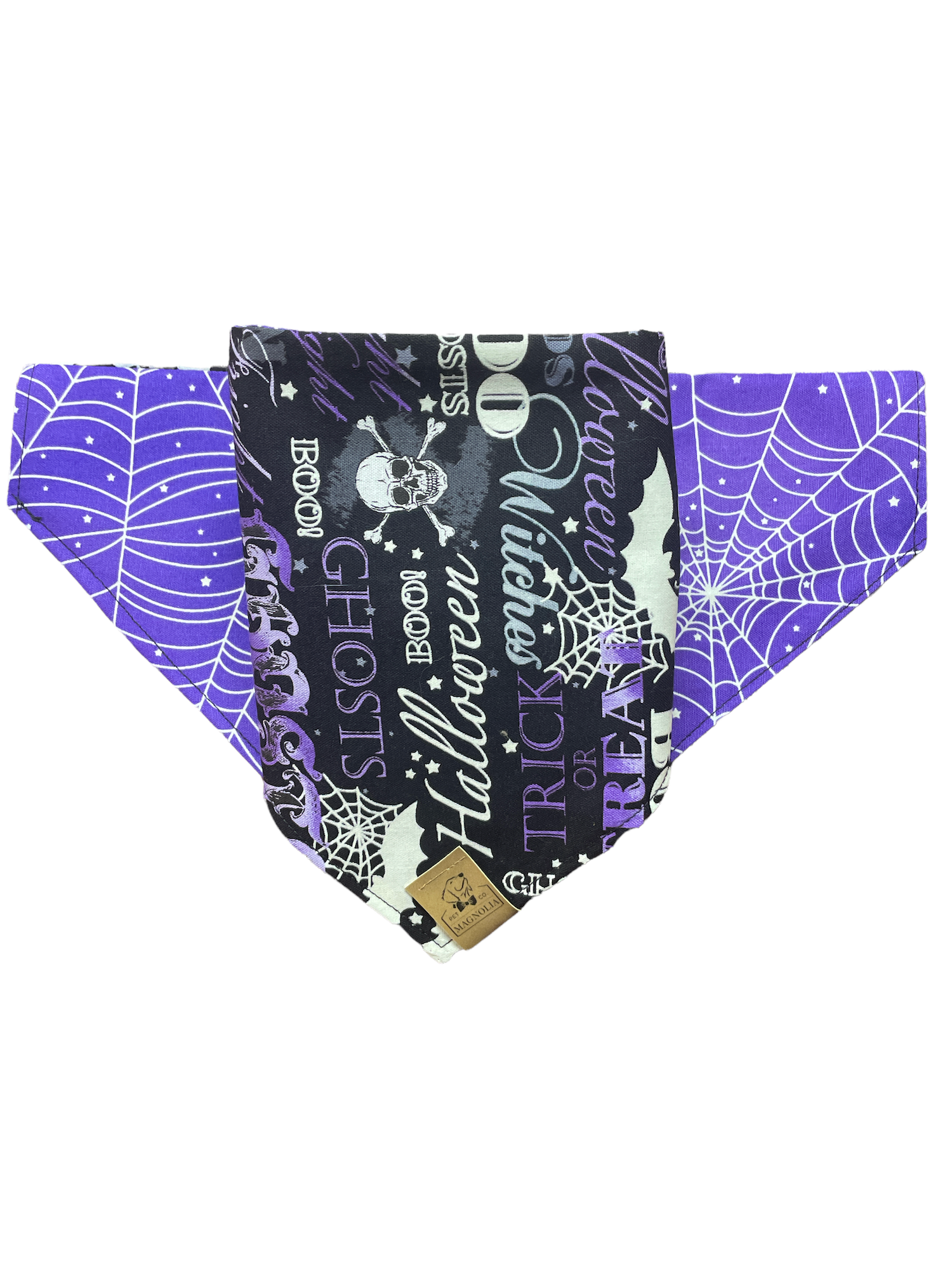 The reversible two pattern bandana can be worn by slipping your dog's collar through the side openings and then clipping the collar around your pup's neck. Slip-on bandanas require a collar.